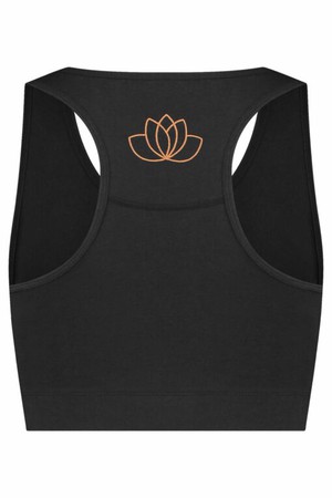 Sustainable dry fit yoga braThe Surya yoga top is made of a sturdy fabric of bamboo, organic cotton and lycra. It offers good medium support thanks to its densely woven fabric. But it also stretches easily, giving fine freedom of movement. The Surya sports bra has no cups and no underwire. On the back of this yoga bra top is an embroidery of a lotus flower.