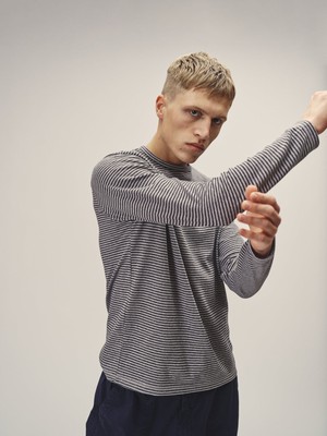 Unser Longsleeve Streifen aus Organic Cotton Mix bietet höchsten Style und Komfort.