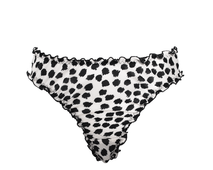 Awaken your senses in these frilly semi-transparent panties lightly touching your skin. They sit medium high on the hips and shows just the right amount of cheeks. Match with White Leo Frilly Bralette for the complete set.