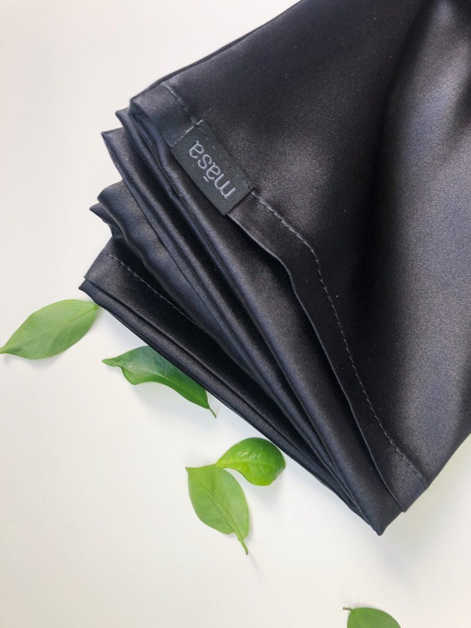 Wear organic, sleep organic. Our particularly heavy silk pillowcase in thick, midnight black glossy satin weave. Handcrafted from organically dyed, non-violent peace silk with a complementary washing bag.