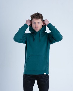 This deep green Premium Organic Hoodie has a tailored fit. The organic fabric feels soft and is of high quality. The timeless design makes this premium hoodie perfect for any season of the year. The hoodie is made of 85% organic cotton and 15% recycled polyester. This hoodie is made under fair and safe working conditions and the production is entirely CO2 neutral.