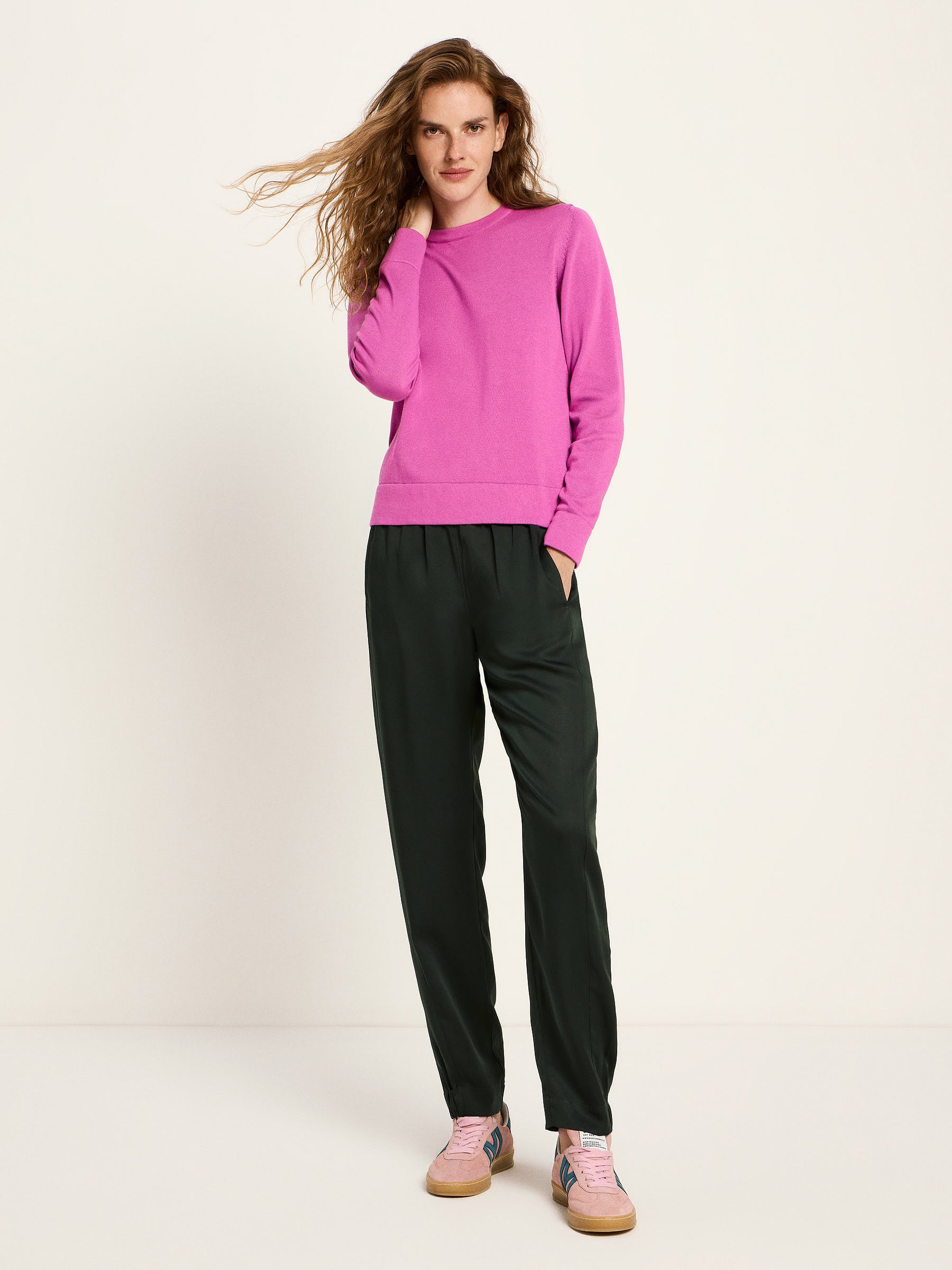 This crew neck sweater made of pure organic cotton impresses with its soft feel, fine texture, and clean cut. The slightly tapered sleeves and classic hem give the piece a modern understated look. Vegan and GOTS-certified, it's ideal for conscious everyday looks, paired with jeans, skirts, or under blazers.