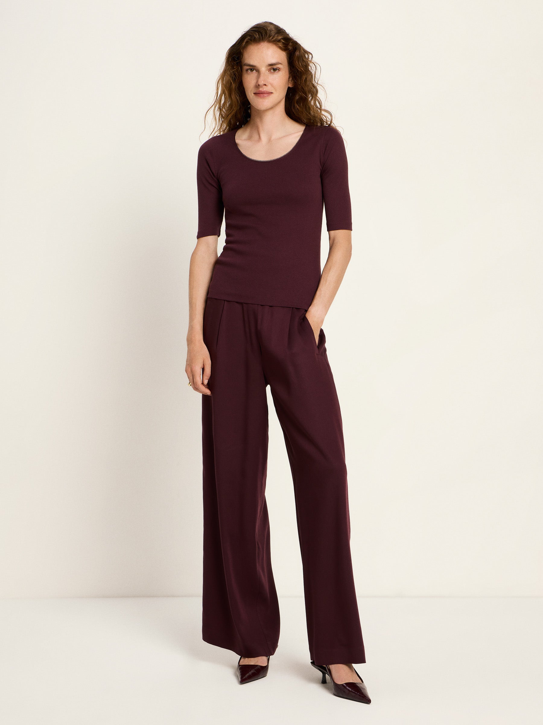 Ein vielseitiges Basic für jeden Tag: Das Halbarmshirt zeigt sich mit schmaler Passform, halblangen Ärmeln und einem femininen Rundhalsausschnitt. Die weiche Jersey-Qualität aus Bio-Baumwolle fühlt sich angenehm auf der Haut an und bietet dank ihrer natürlichen Elastizität hohen Tragekomfort.