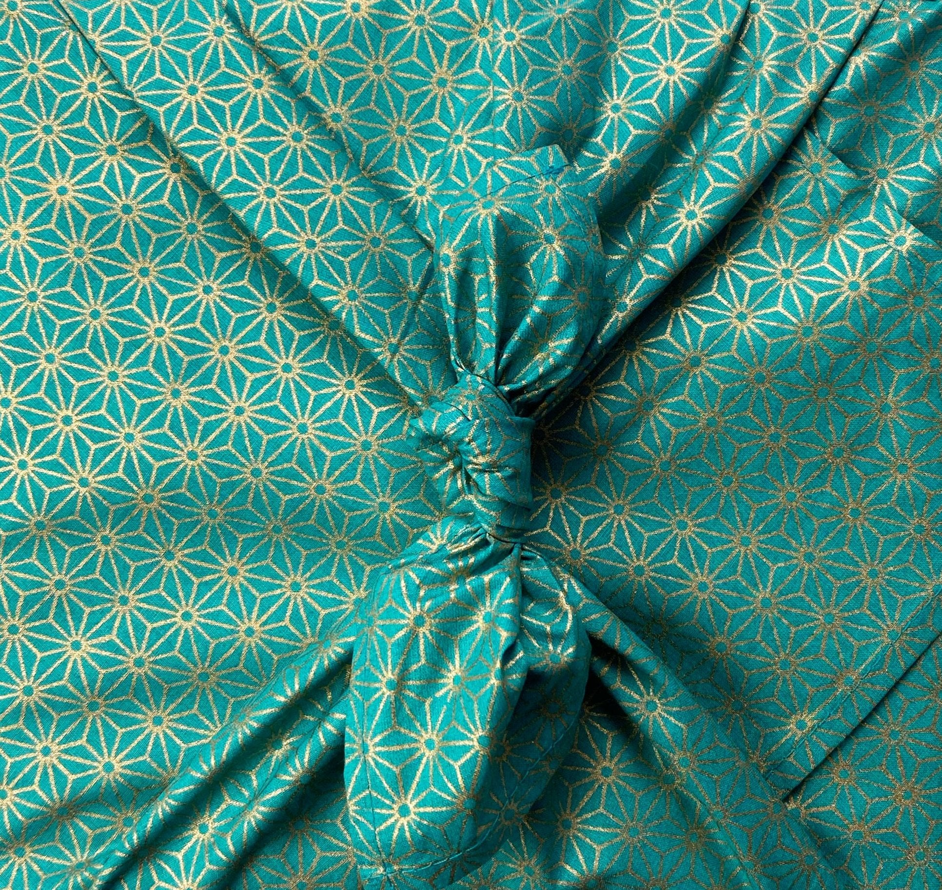 Rich jade green meets delicate gold asanoha star accents in this timeless FabRap™, inspired by traditional Japanese print design. Whether used for Christmas, birthdays or any special occasion, this reusable fabric gift wrap brings a touch of elegance and meaning to every gift.