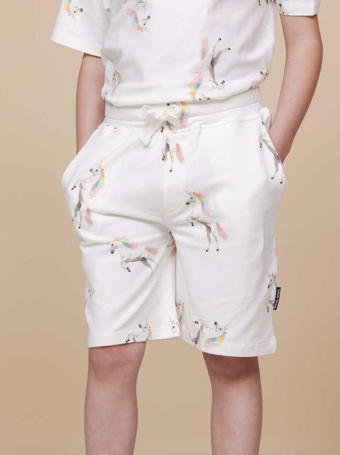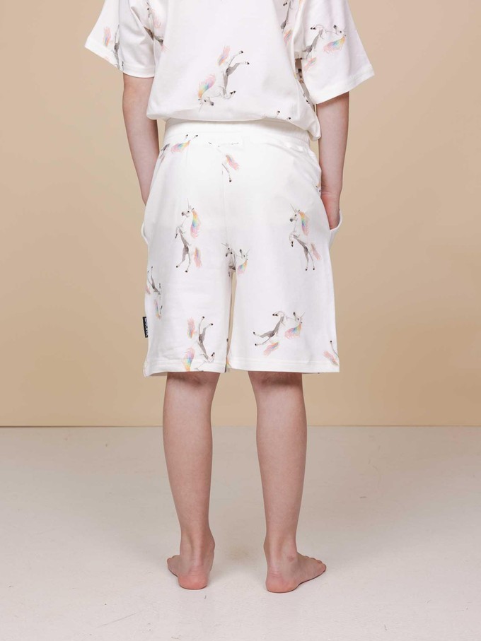 Kids shorts with photo print made of 95% organic cotton, 5% elastane.